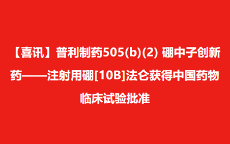【喜讯】普利制药505(b)(2) 硼中子创新药——注射用硼[10B]法仑获得中国药物临床试验批准